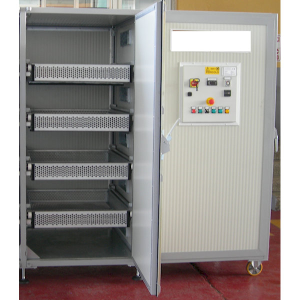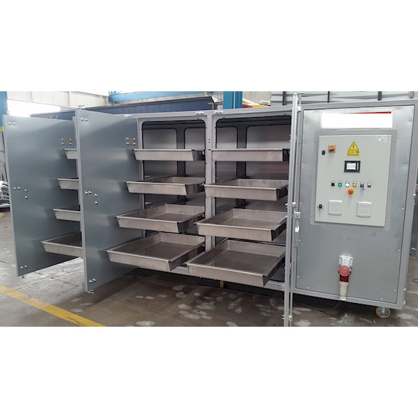 Zásuvková sušiareň 4K-12K je od popredného Českého výrobcu poľnohospodárskej techniky KOVO NOVÁK. Zásuvková sušička je vhodná na sušenie chmeľu, byliniek, plátkov mäsa, nakrájaných húb, plátky ovocia (jablká, hrušky, slivky, pomaranče), nakrájanej zeleniny (huby, špenát, baklažán, kapusta, paradajky, paprika). Orientačne sa doba sušenia pohybuje od 15 do 45 hodín podľa rôznych produktov a ich obsahu vlhkosti. Sušenie prebieha vďaka ohriatemu vzduchu z elektrických vykurovacích telies v sušiacej komore. Materiál je vložený do zásuvky alebo zásobníkov (zásobníky môžu byť vyrobené z nerezového materiálu). Dĺžka reakcie na obsah vstupnej vlhkosti materiálu. (ak začneme so sušením ihneď po výbere, alebo po čiastočnom, prirodzenom vysušení na slnku niekoľko hodín po zbere). U chmeľu / byliniek trvá sušenie približne 20 až 30 hodín pri 40-45 ° C (a pri okolitej teplote 15 °C). Výstupná vlhkosť 10%, vstupná 70-78% pre chmeľ. Sušenie prebieha pomalým šetrným spôsobom, ktorý nepoškodzuje kvalitu sušeného materiálu. Sušička je dodávaná v konfigurácii typu plug and play a s elektrorozvádzačom (400 V) a PLC, je teda pripravená ihneď na prevádzku.
